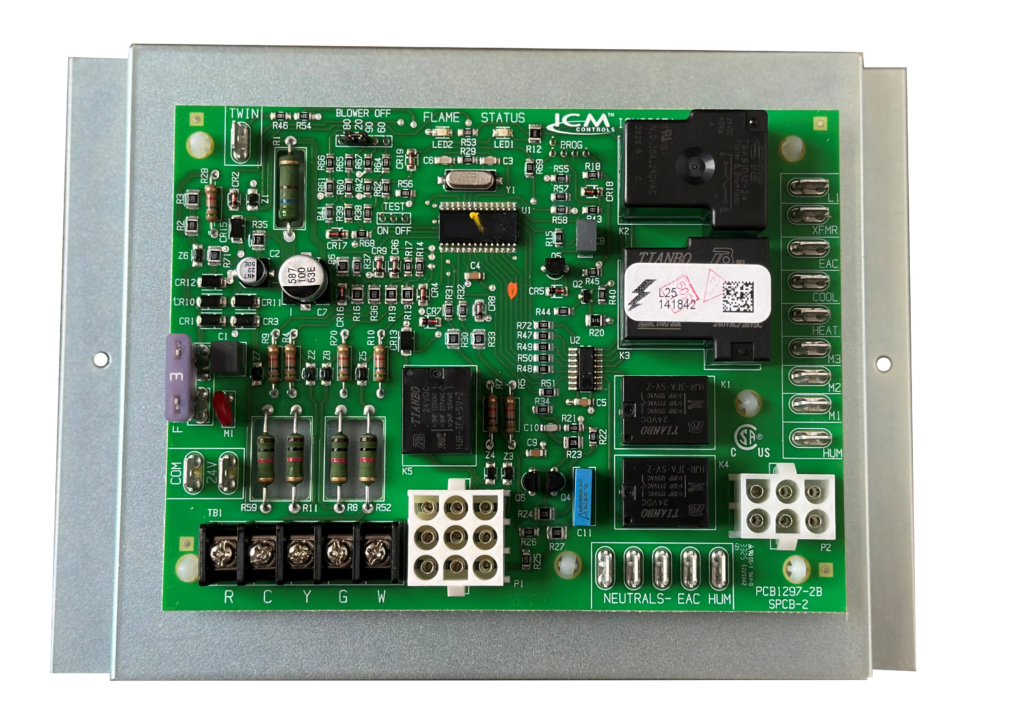 The ICM2805A is a low-cost replacement for Nordyne 624631 furnace control board which is used to control gas valve, inducer draft motor, circulating blower and hot surface ignitor.- Low-cost, form, fit and functional OEM replacement control board for Nordyne: 624631
