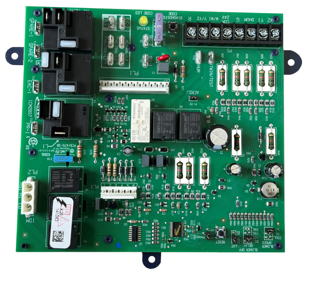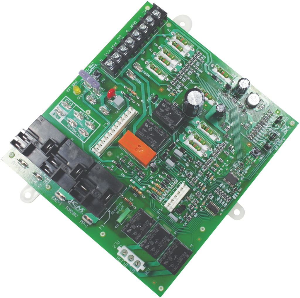 The ICM2807 is a low-cost replacement for the Carrier HK42FZ017 furnace control board, which is used to control gas valve, ignitor, blower motor, inducer, humidifier and air cleaner- Microprocessor-based precision