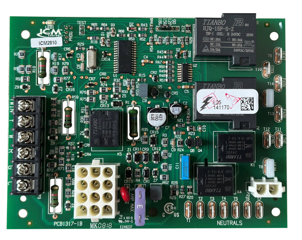 The ICM2810 is a low-cost replacement for the Goodman PCBBF136 and PCBBF140 furnace control boards which is used to control gas valve, ignitor, blower motor, inducer, humidifier and air cleaner.- Low cost, Goodman replacement board