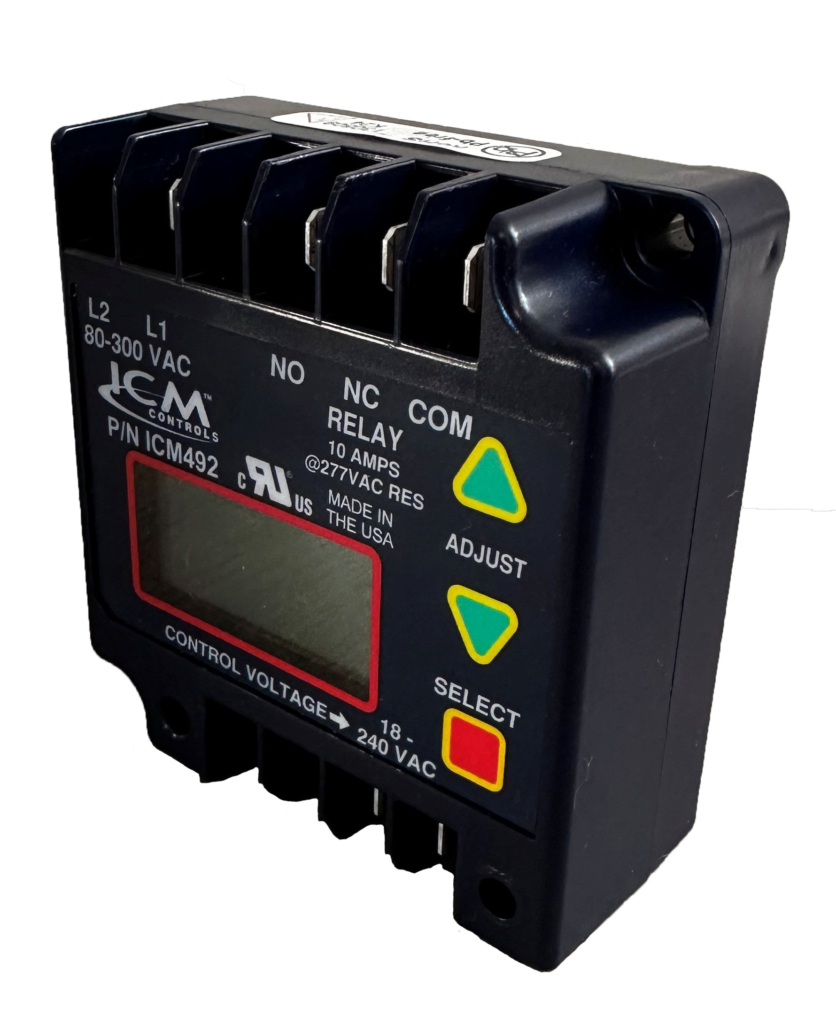 The ICM492 constantly monitors line voltage and protects single-phase equipment against low and high voltage conditions, and rapid short cycling due to voltage fault or power interruption. Its easy-view, backlit digital display makes it user friendly to read and monitor voltage conditions, and adjust parameters to meet specific needs. Alternative Replacement: ICM492D- Protects Against Over and Under Voltage, and Rapid Short Cycling caused by Transient Faults and Power Interruptions